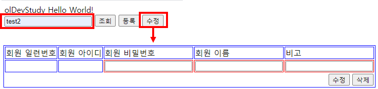 이제 조회된 내용을 변경할 수 있도록 태그를 추가하고 버튼도 추가해보자.
