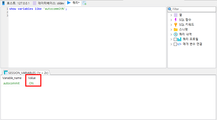이미지와 같이 Value 값이 ON이면 AutoCommit이 true이므로 꺼주자.