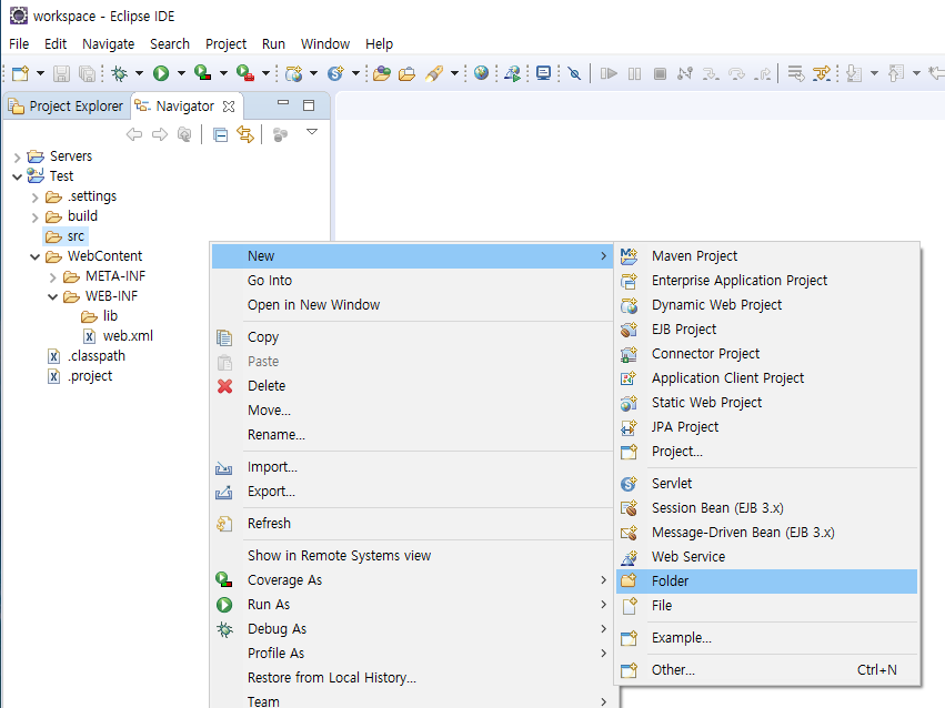Navigator를 열어본 모습. 요놈을 열었다고 Project Explorer를 닫지 않는다 ㅎ