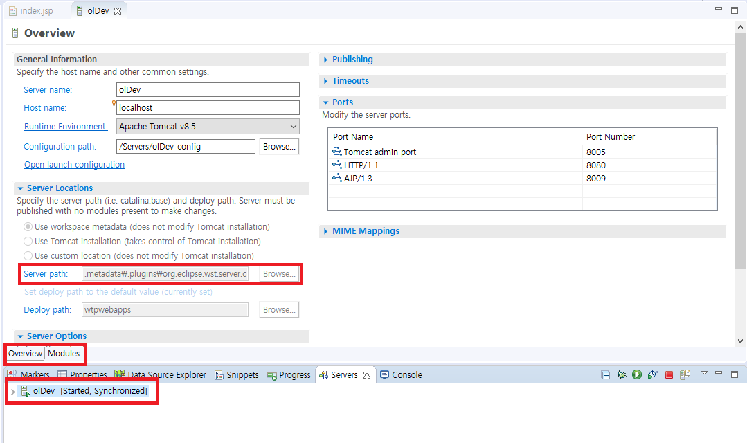 기본적으로 Overview로 표현하는데 여기서 중용한 것은 Server Path(배포 경로)와 port 정도?