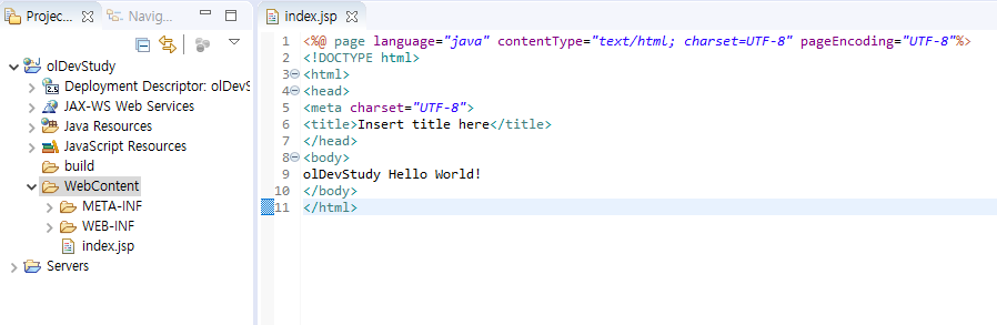 환경 설정해서 세팅했던 charset대로 UTF-8인 jsp 파일이 만들어졌다.