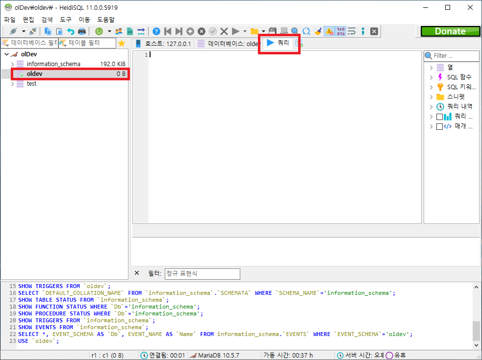 - 고맙게도 MariaDB를 설치하면 HeidSql을 함께 설치해줍니다.